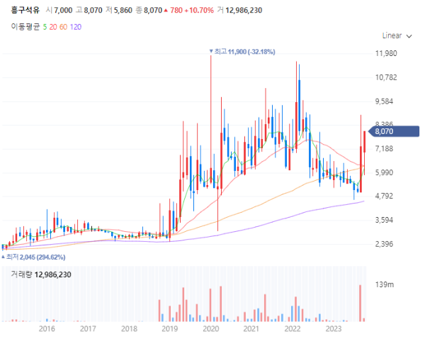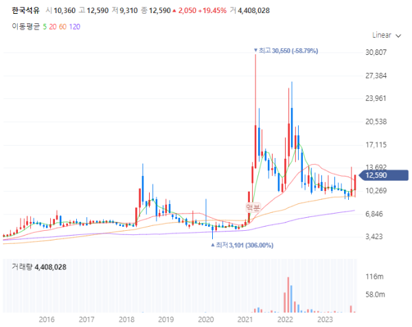 1964년 12월에 한국석유공업주식회사로 설립되어 1977년 6월에 유가증권시장에 상장되었습니다. 주요 사업으로는 국내 블랙아스팔트 시장에서 약 70%의 점유율을 가진 아스팔트 사업과 합성수지 및 플라스틱 제품 가공 및 판매인 합성수지 사업이 있습니다. 뿐만 아니라 석유화학상품 및 스포츠 용품 등의 판매 사업도 다루고 있습니다.